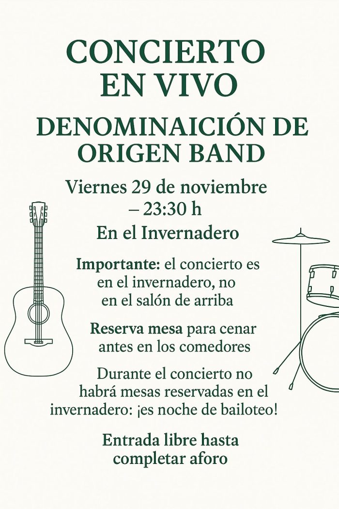 Importante: el concierto es en el Invernadero, NO en el salón de arriba
